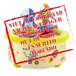 Proposez une expérience musicale nostalgique avec notre boite à musique. Avec la mélodie "Roman Hikō" du groupe "Kome Kome Club" jouant au moment où le mécanisme est remonté, une fusée et un robot commencent à danser sur la piste. La clé pour remonter le mécanisme se trouve facilement sous la boite (mécanisme manuel ne nécessitant pas de piles). Ce jouet amusant et élégant sera un ajout parfait à tout magasin de jouets.