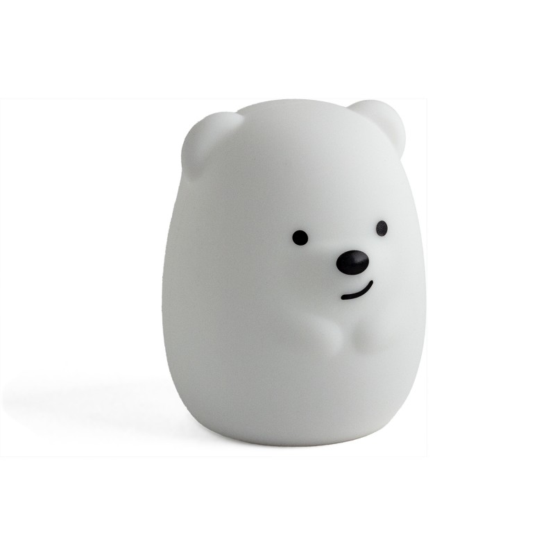 Made from high-quality soft silicone, this mini-bear night light is gentle to the touch and easy to handle. It operates on an easily replaceable CR2032 battery and is equipped with a convenient on/off button located under the character for easy and intuitive use. The mini-bear night light illuminates in eight different colors to accommodate all tastes and preferences. The battery is included with the night light for immediate use, and the user manual is available in six different languages: French, English, Italian, German, Spanish, and Dutch. This night light is ideal for children's bedrooms, nurseries, hotels, and hospitals. It provides a soft and soothing light that will help children relax and fall asleep safely.