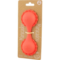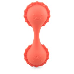 - Ultra-soft silicone maraca with two playful lion-head ends